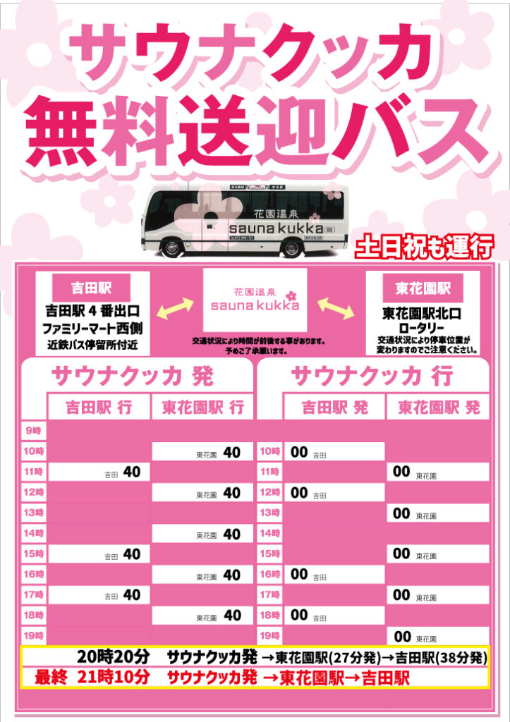 無料バスの時刻表