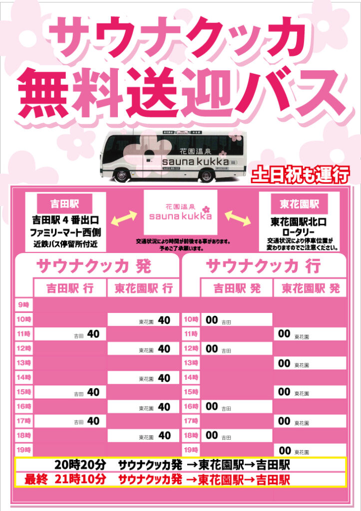 • 無料バス時刻表